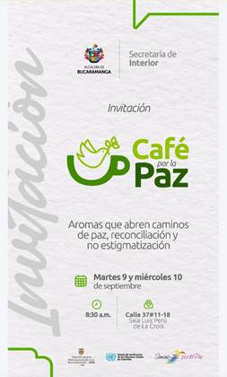 Uno de los eventos más destacados fue el “Café por la Paz”, realizado los días 9 y 10 de septiembre en la Sala Luis Perú de La Croix en Bucaramanga. Bajo el lema “Aromas que abren caminos de paz, reconciliación y no estigmatización”, este encuentro, convocado por la Alcaldía de Bucaramanga, la Agencia para la Reincorporación y la Normalización (ARN) y la Misión de Verificación de la ONU en Colombia, reunió a líderes sociales, firmantes del Acuerdo de Paz, académicos, estudiantes y miembros de la comunidad en general, consolidando un pacto ciudadano por la paz y la convivencia.