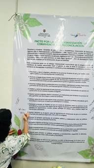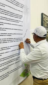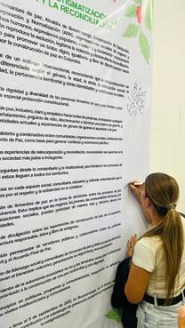 Finalmente, el evento culminó con la firma de un pacto simbólico por la No Estigmatización, la Convivencia y la Reconciliación, un acto solemne que marcó el compromiso de todos los participantes con la construcción de un futuro libre de estigmas y lleno de esperanza. Cada firma representó no solo un gesto simbólico, sino un compromiso real con la transformación social desde los territorios.