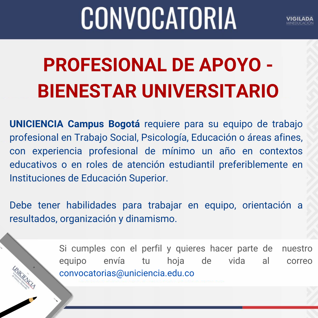 Convocatoria Profesional de Apoyo Bienestar Universitario - Bogotá Agosto 2025